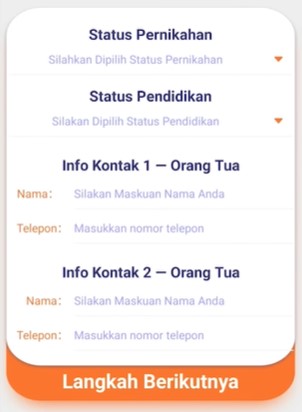 Kemudian, isi dengan data diri kalian. Untuk info kontak 1 dan 2, gunakan nomor asal-asalan dari kontak kalian. Gunakan kontak yang menggunakan nama “Ibu”, “Mamah”, “Ayah Simpati”, “Papa”, dan sebagainya.